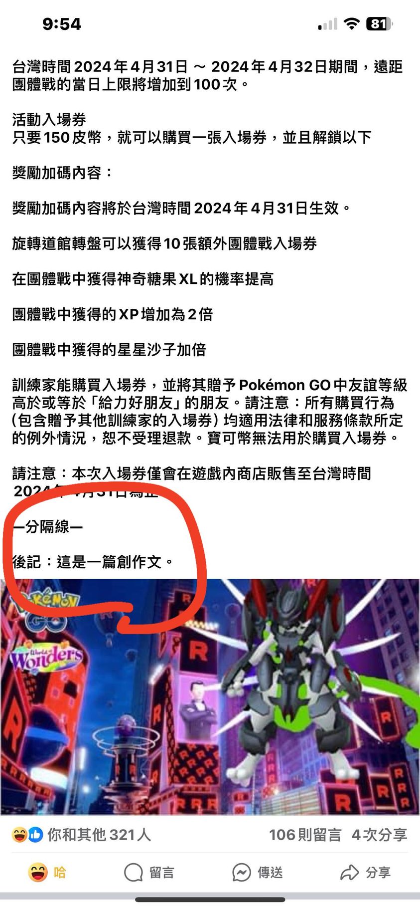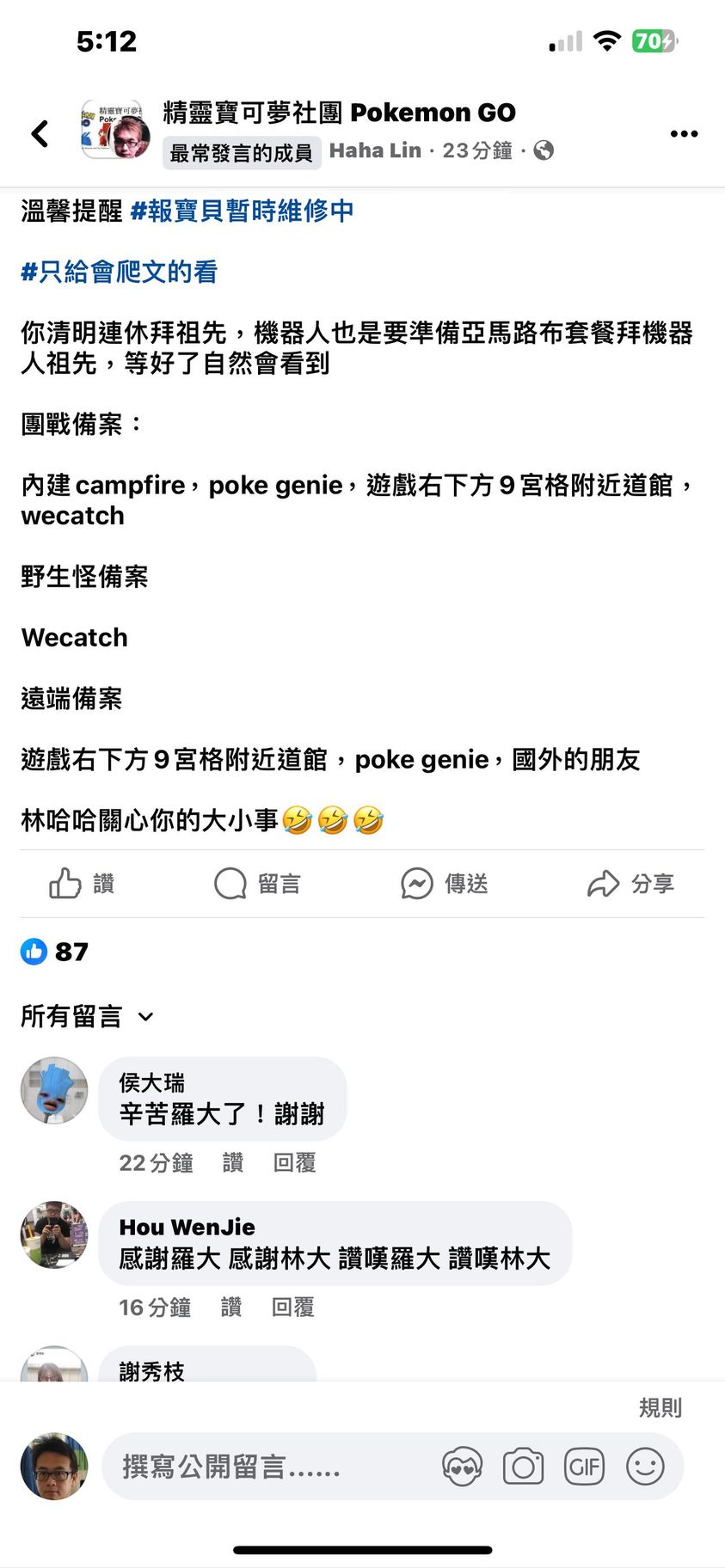 哈哈林下午就是看到他貼文才趕快通知我