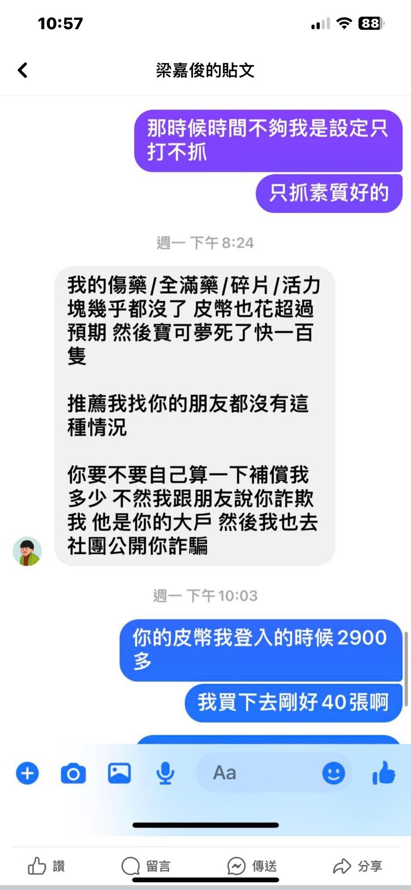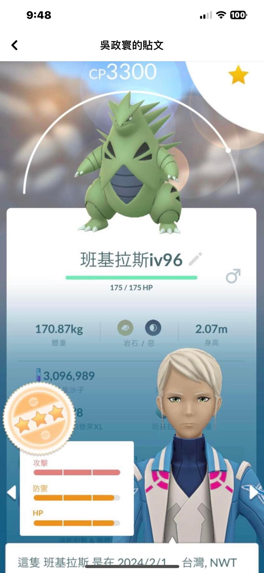 我都沒這隻100了,他更不可能有