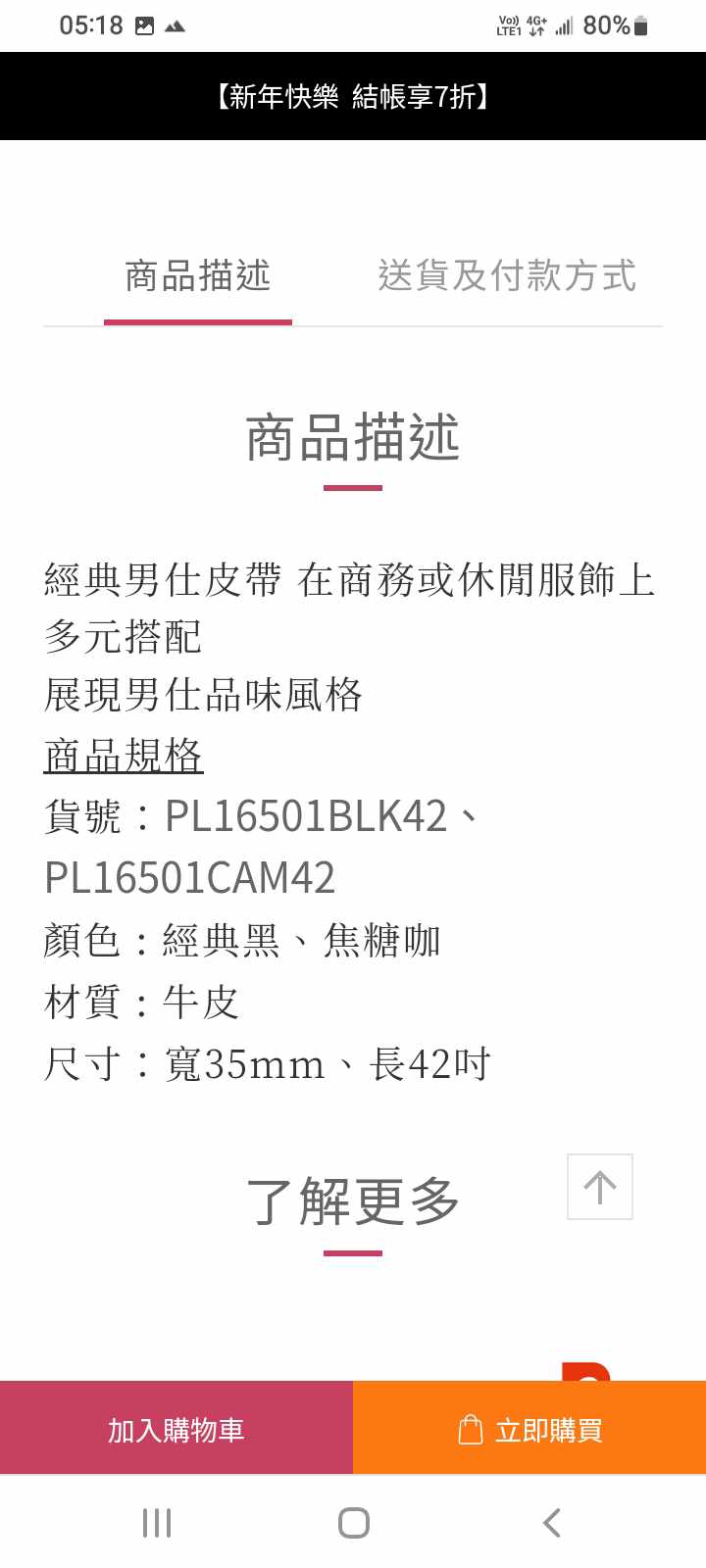 我有問有沒有賣皮帶身,她說沒有,都是賣整條的