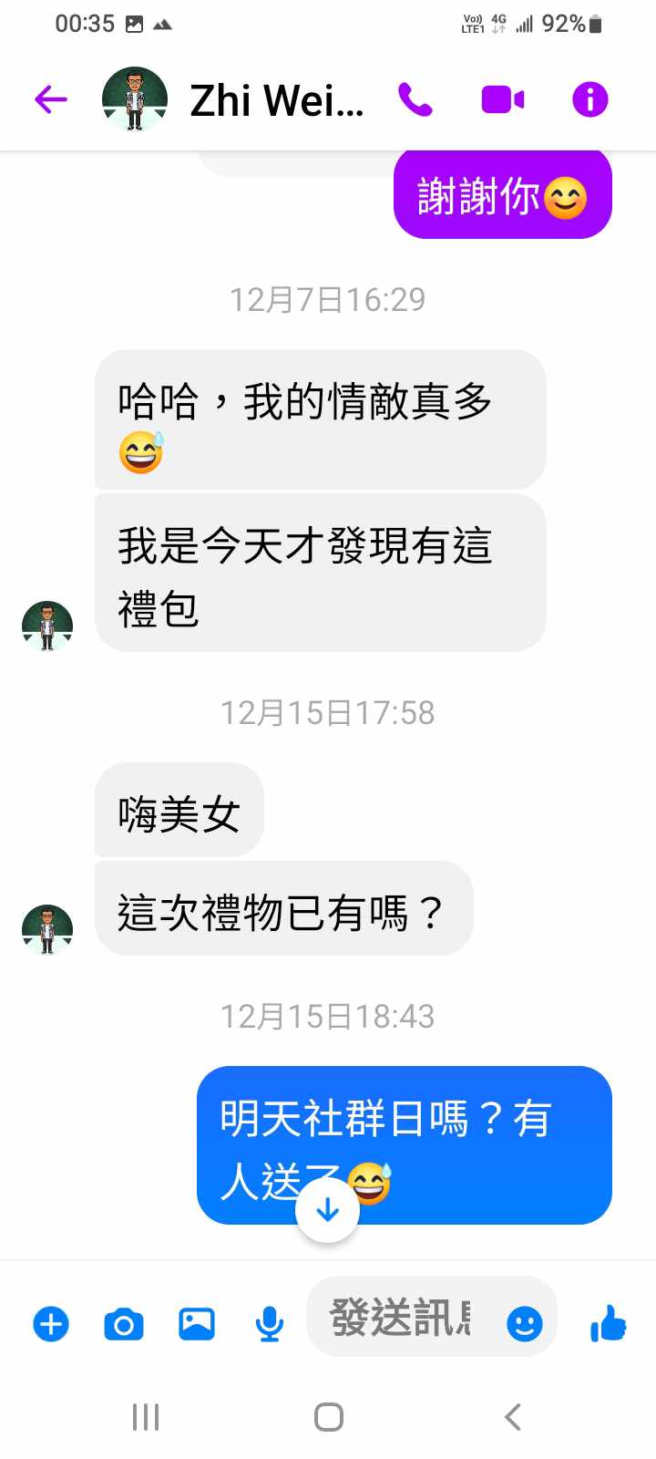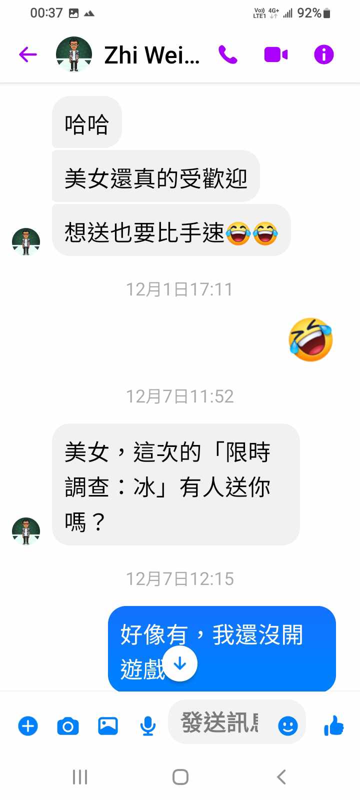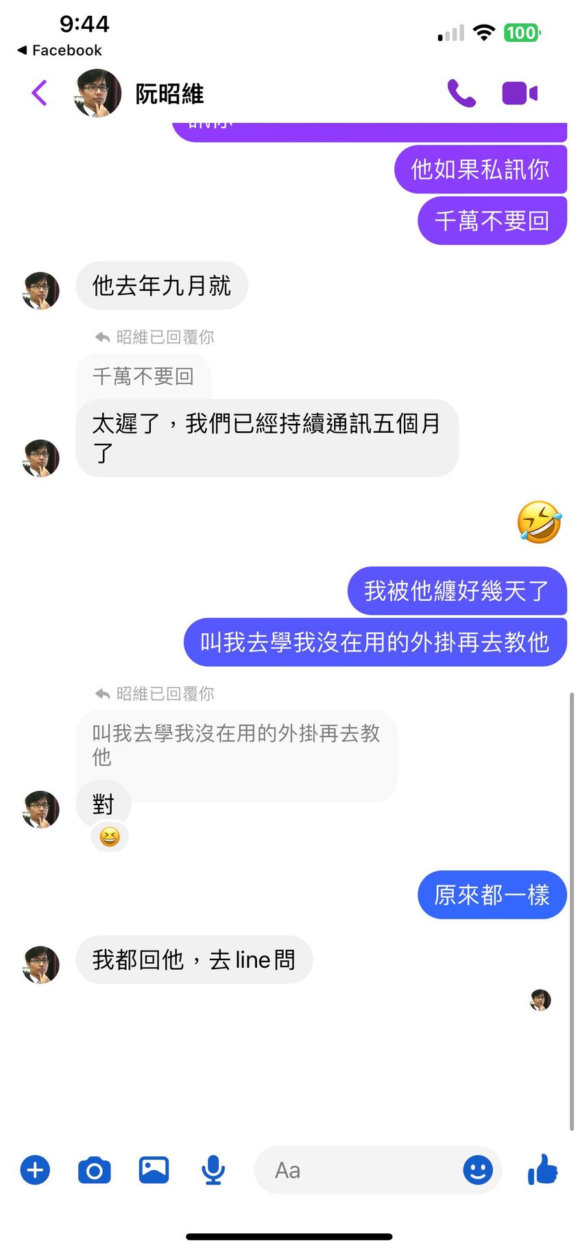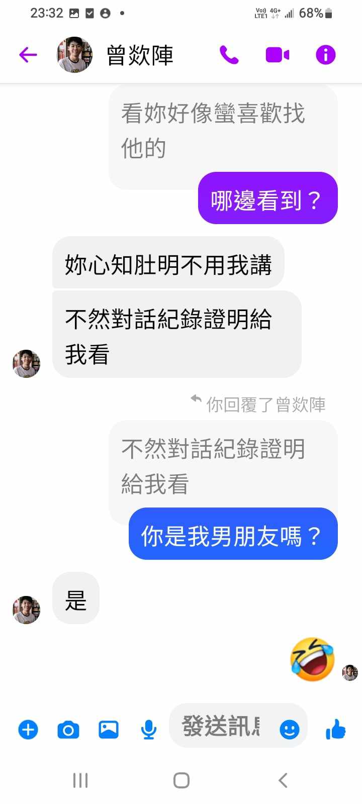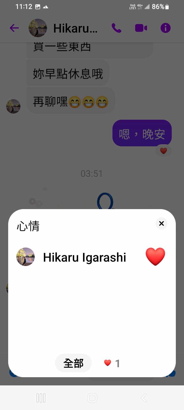 對你的訊息「」傳達了 😆 心情