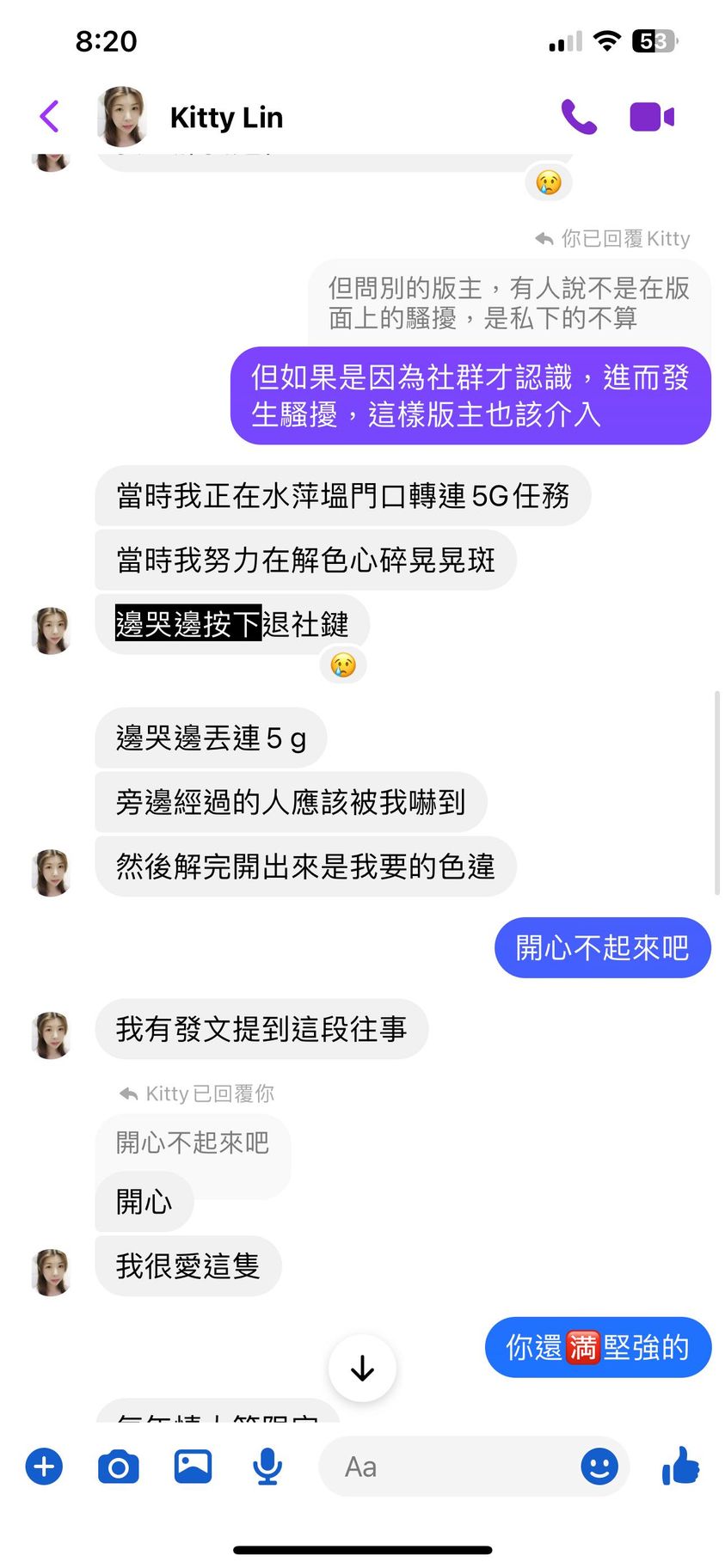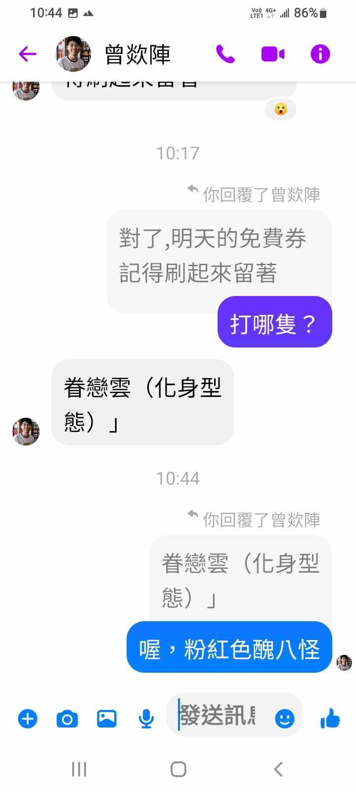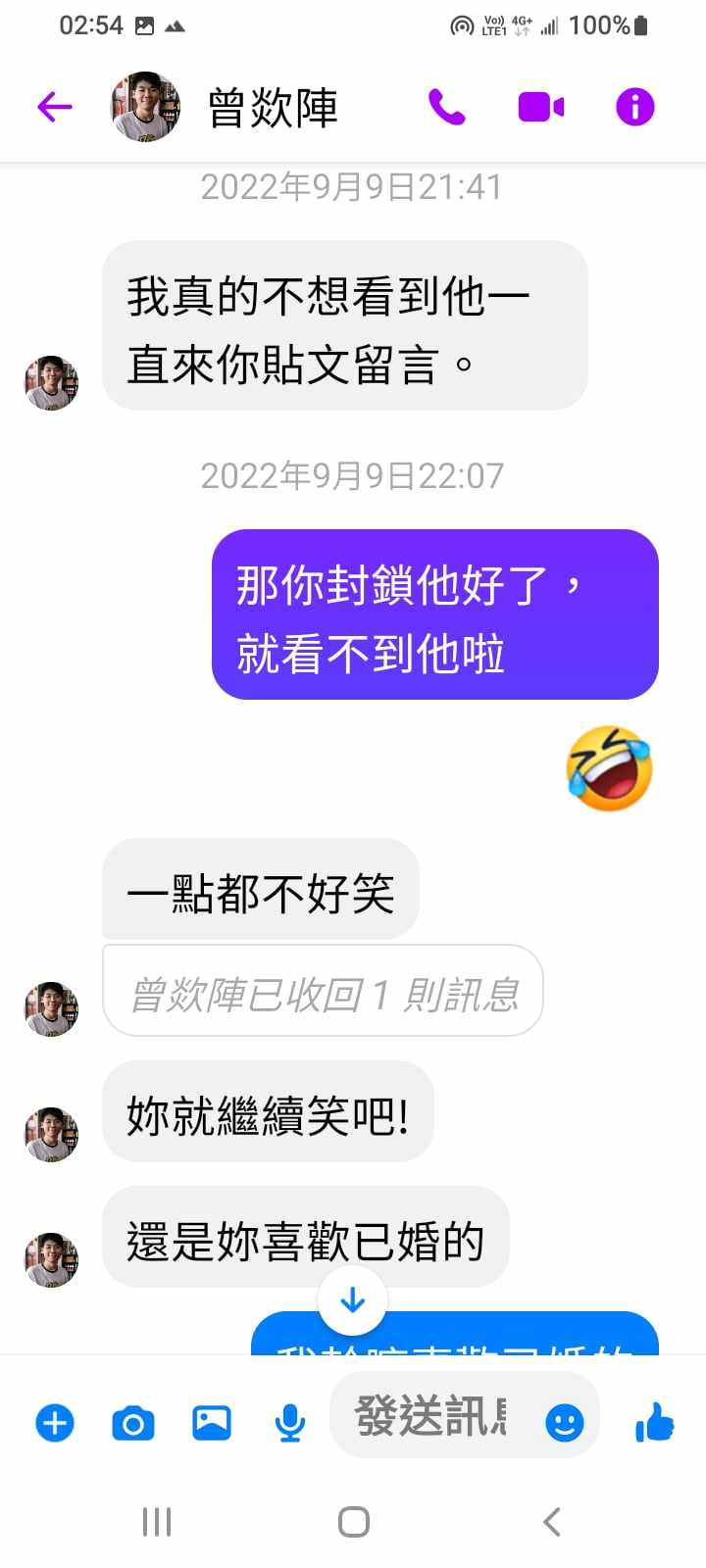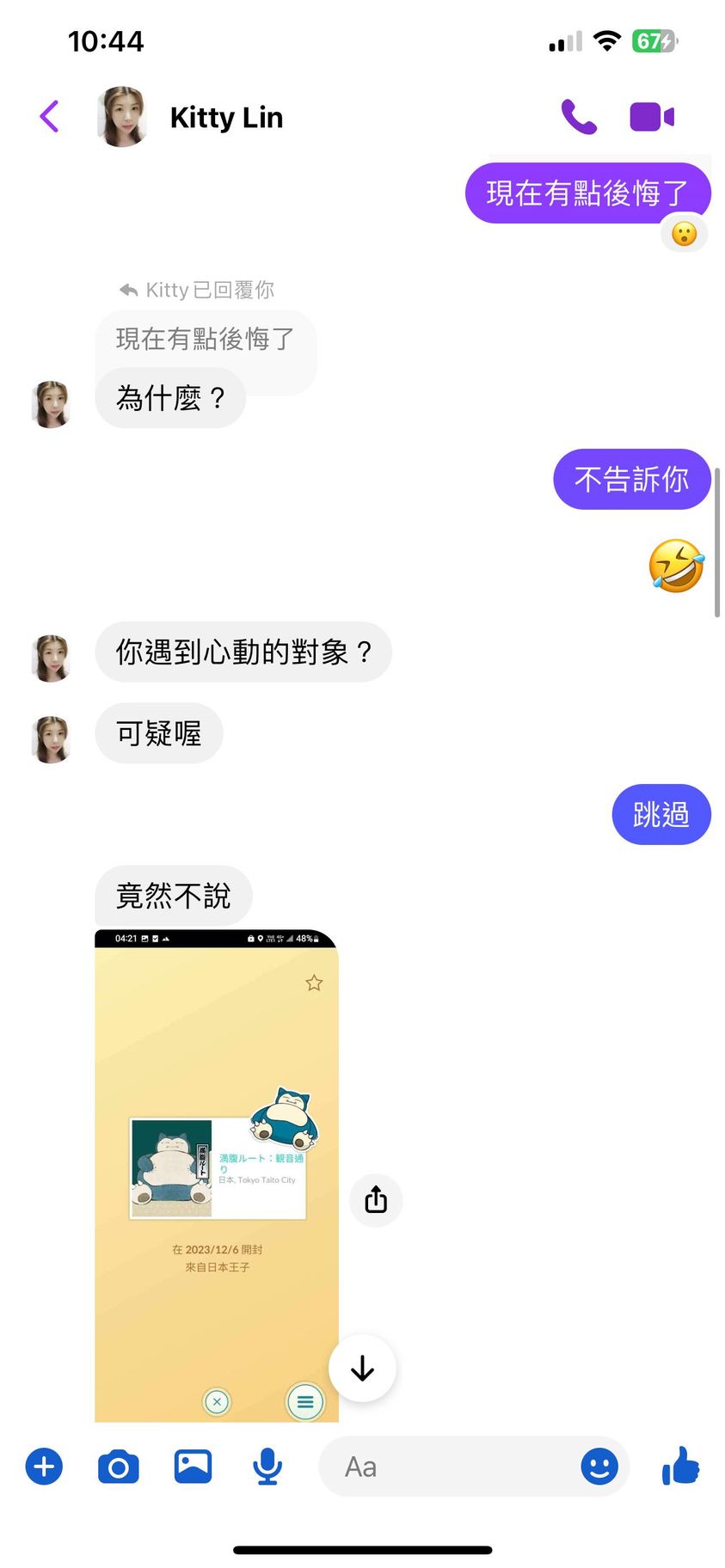 對你的訊息「」傳達了 😆 心情
