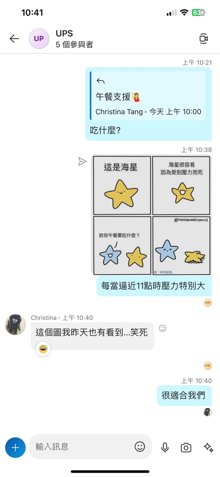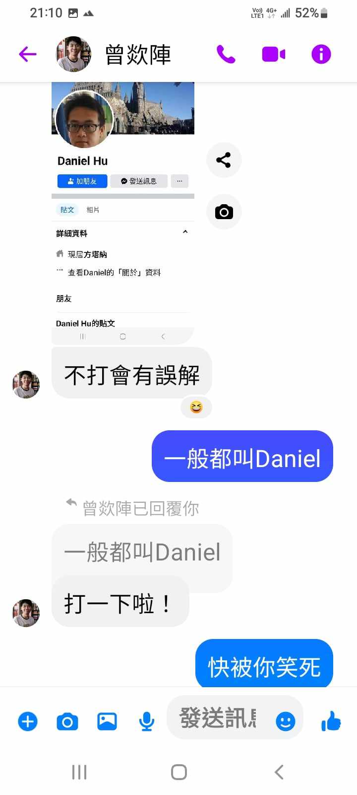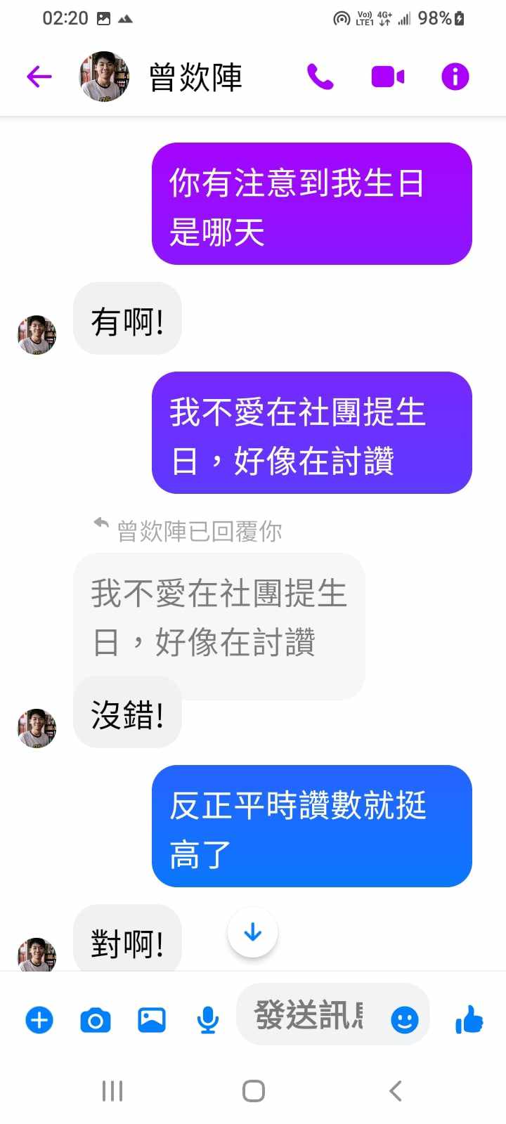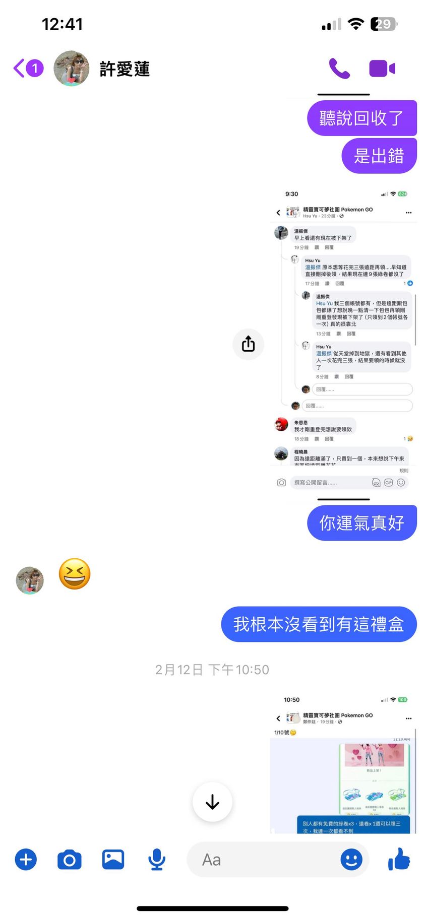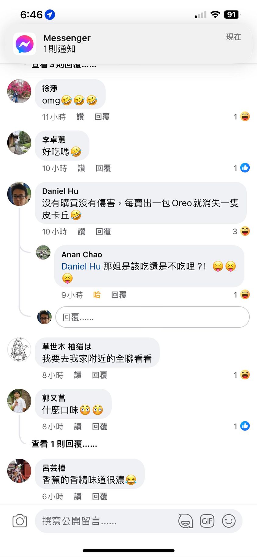 對你的訊息「」傳達了 😆 心情