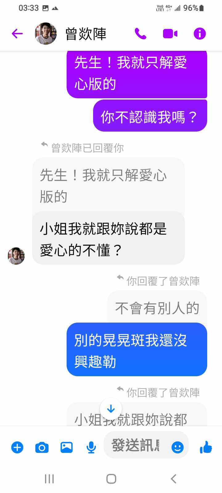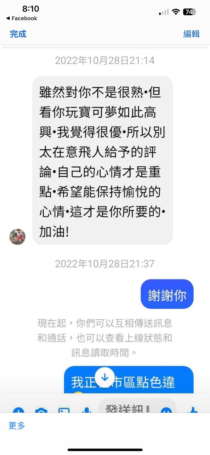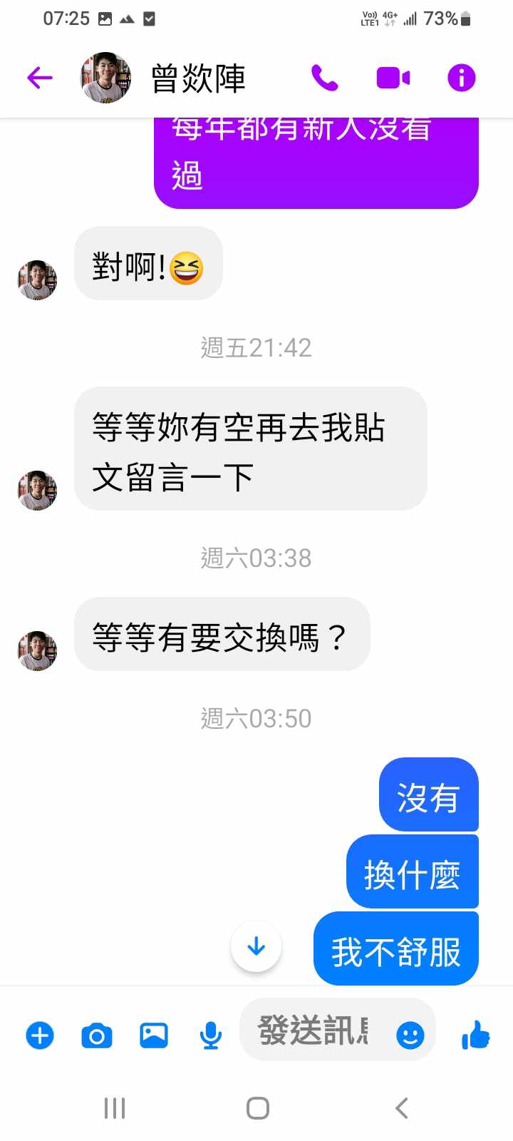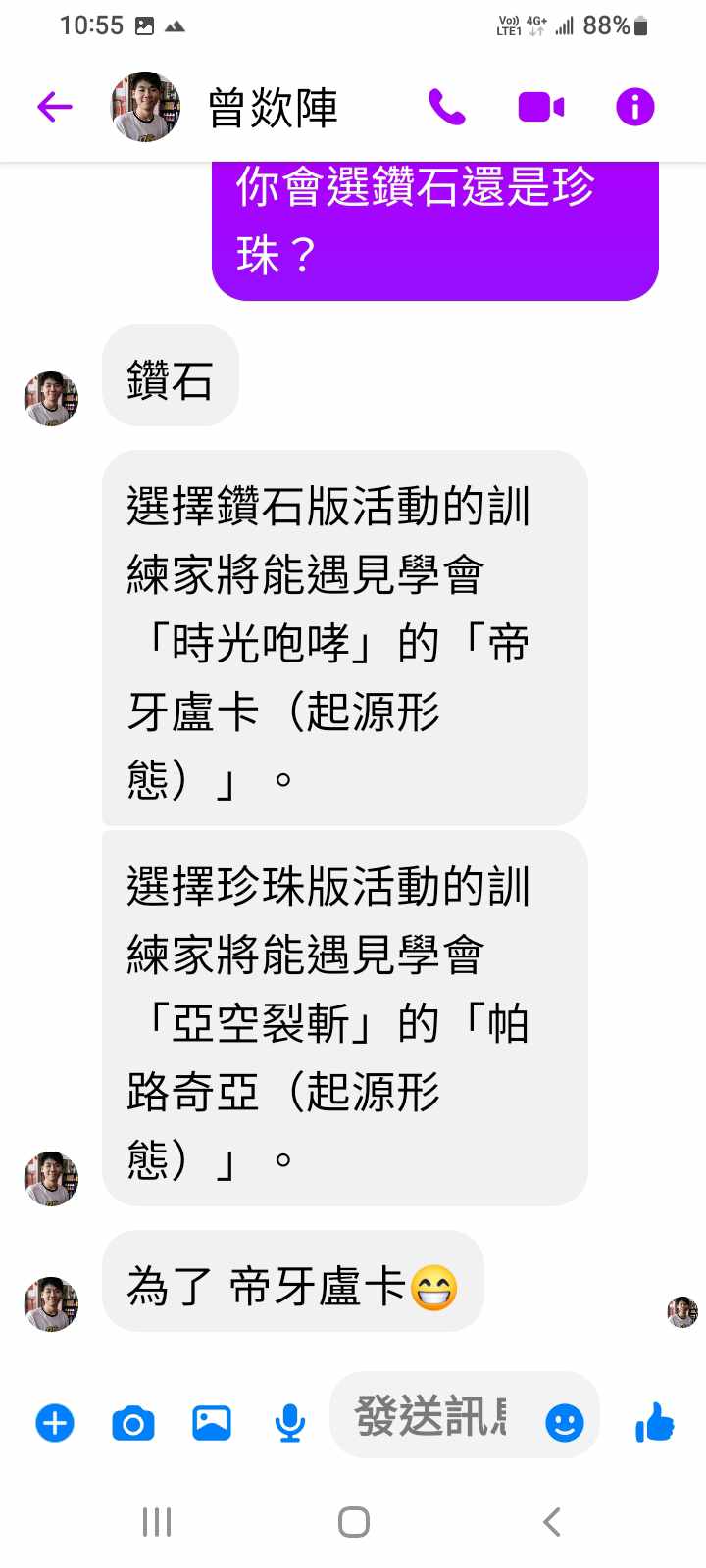 對你的訊息「」傳達了 😆 心情