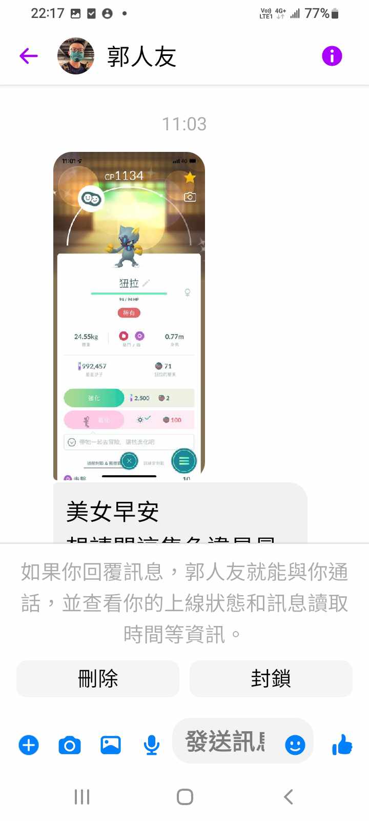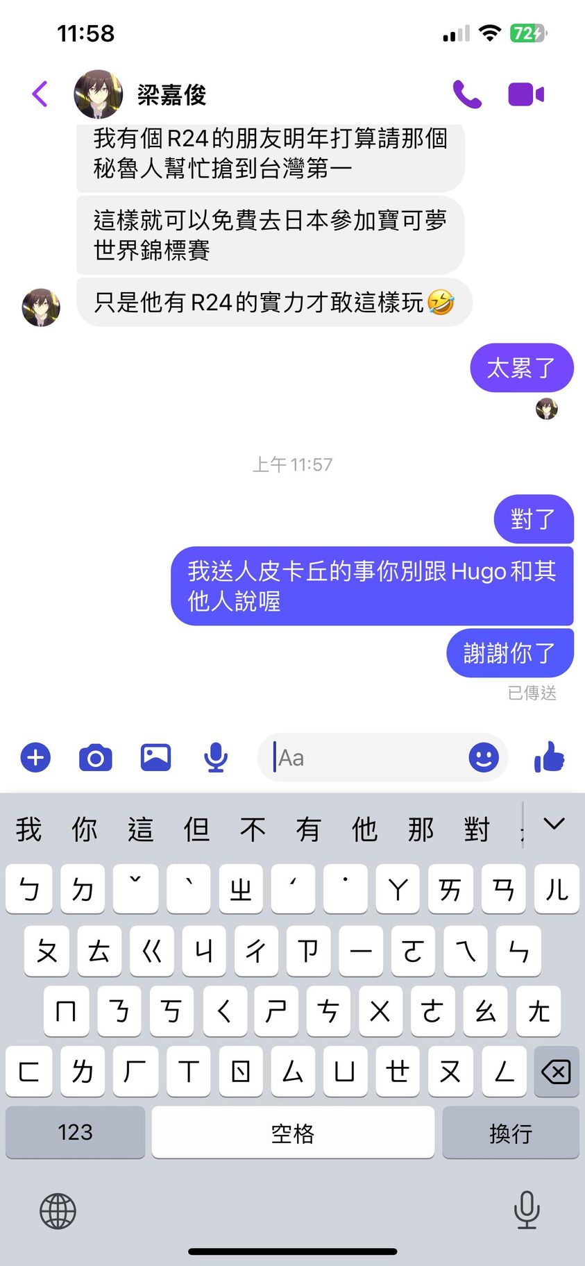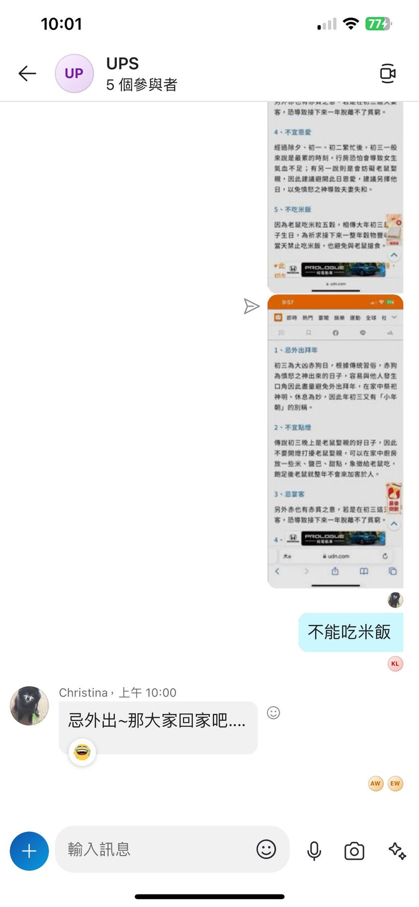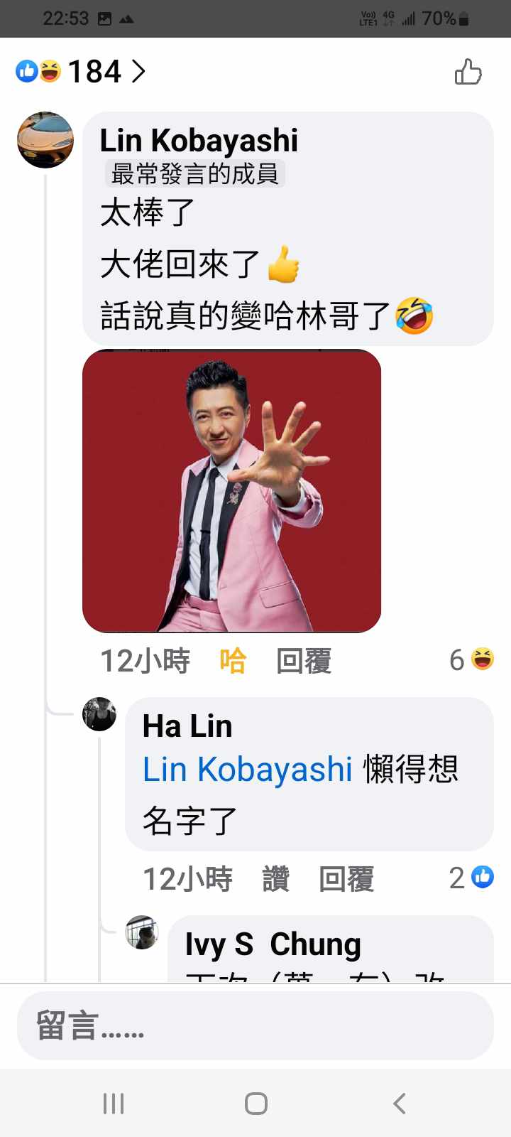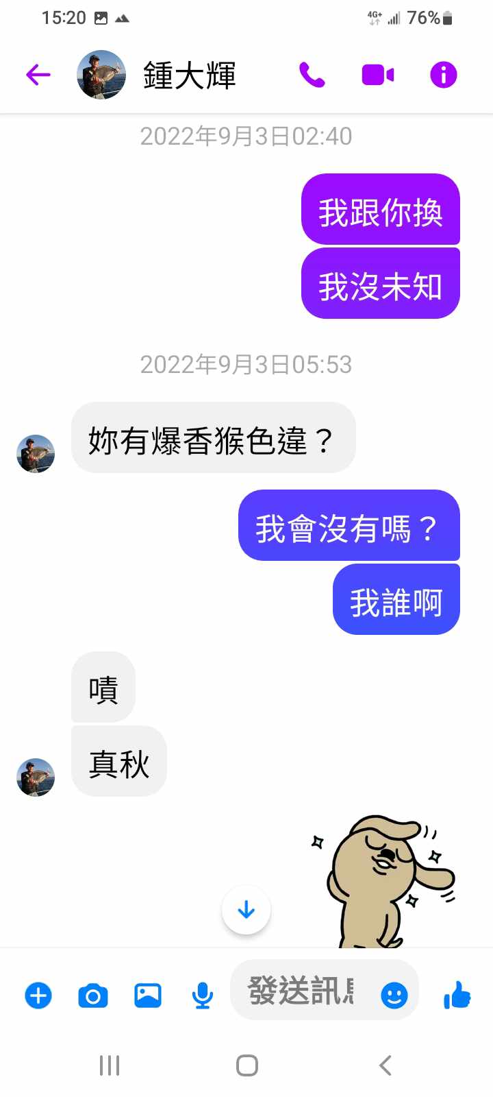 對你的訊息「」傳達了 😆 心情
