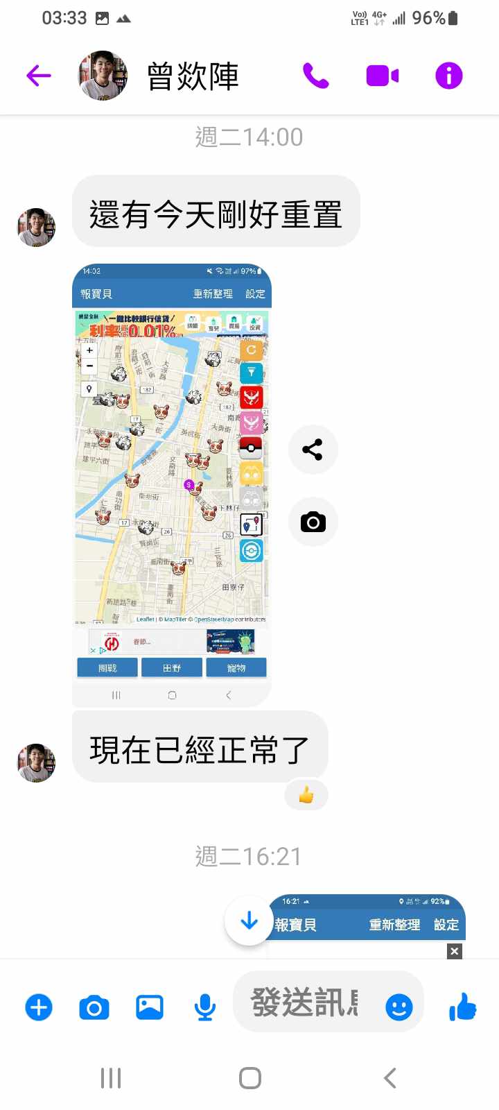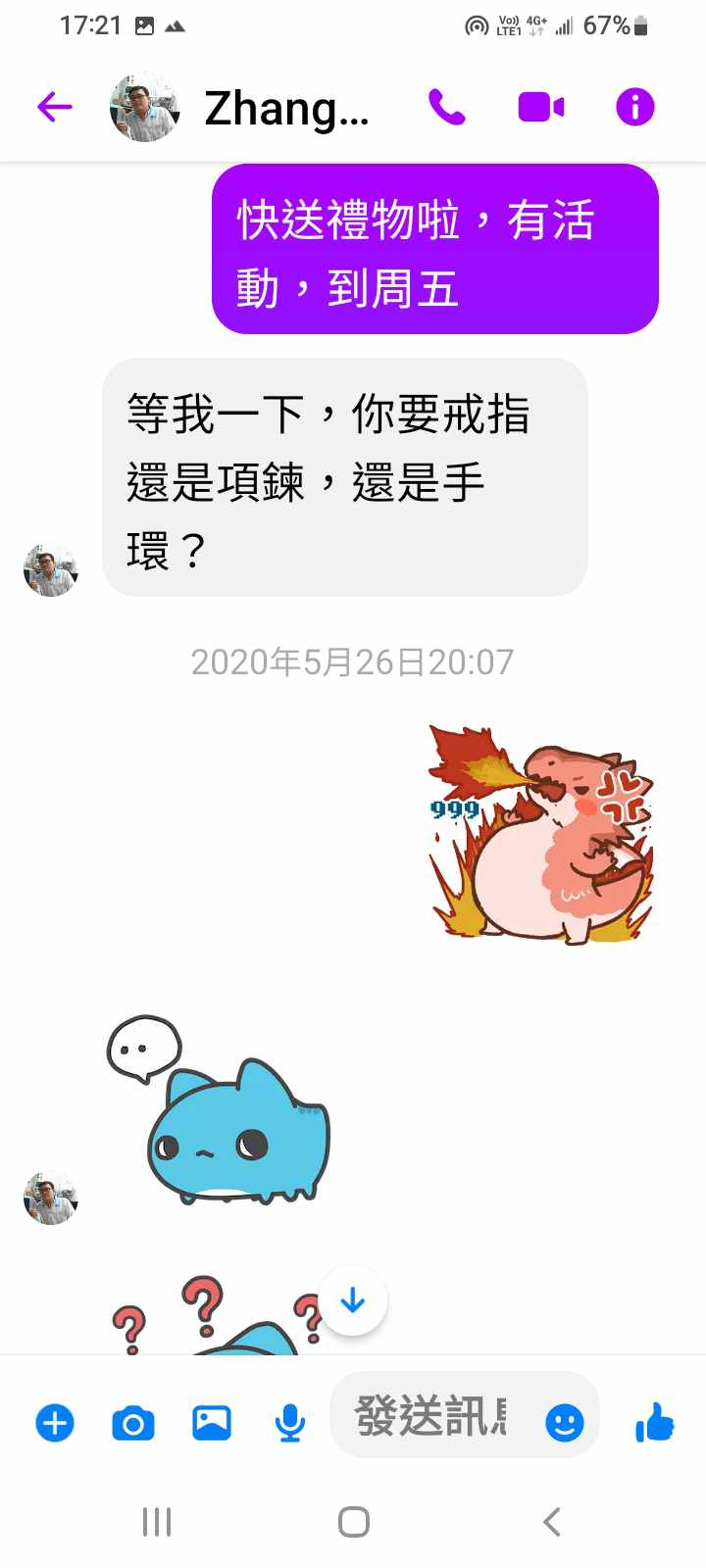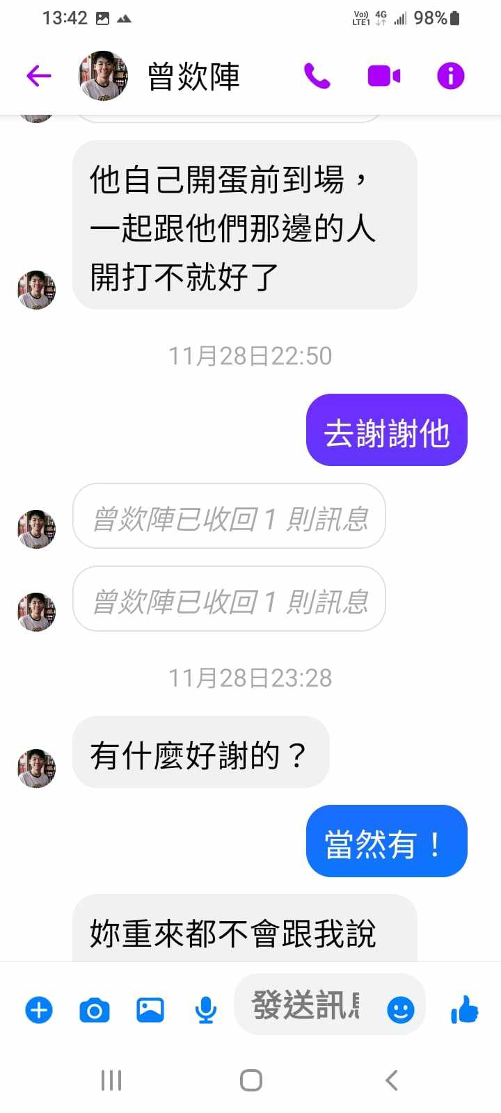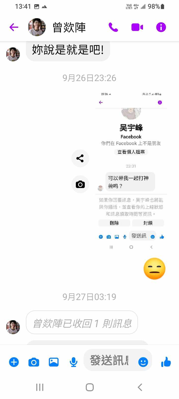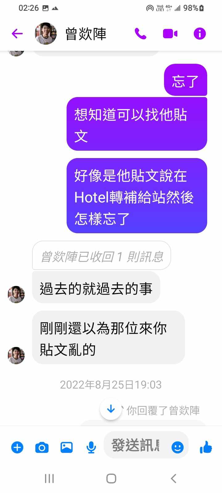 對你的訊息「」傳達了 😮 心情