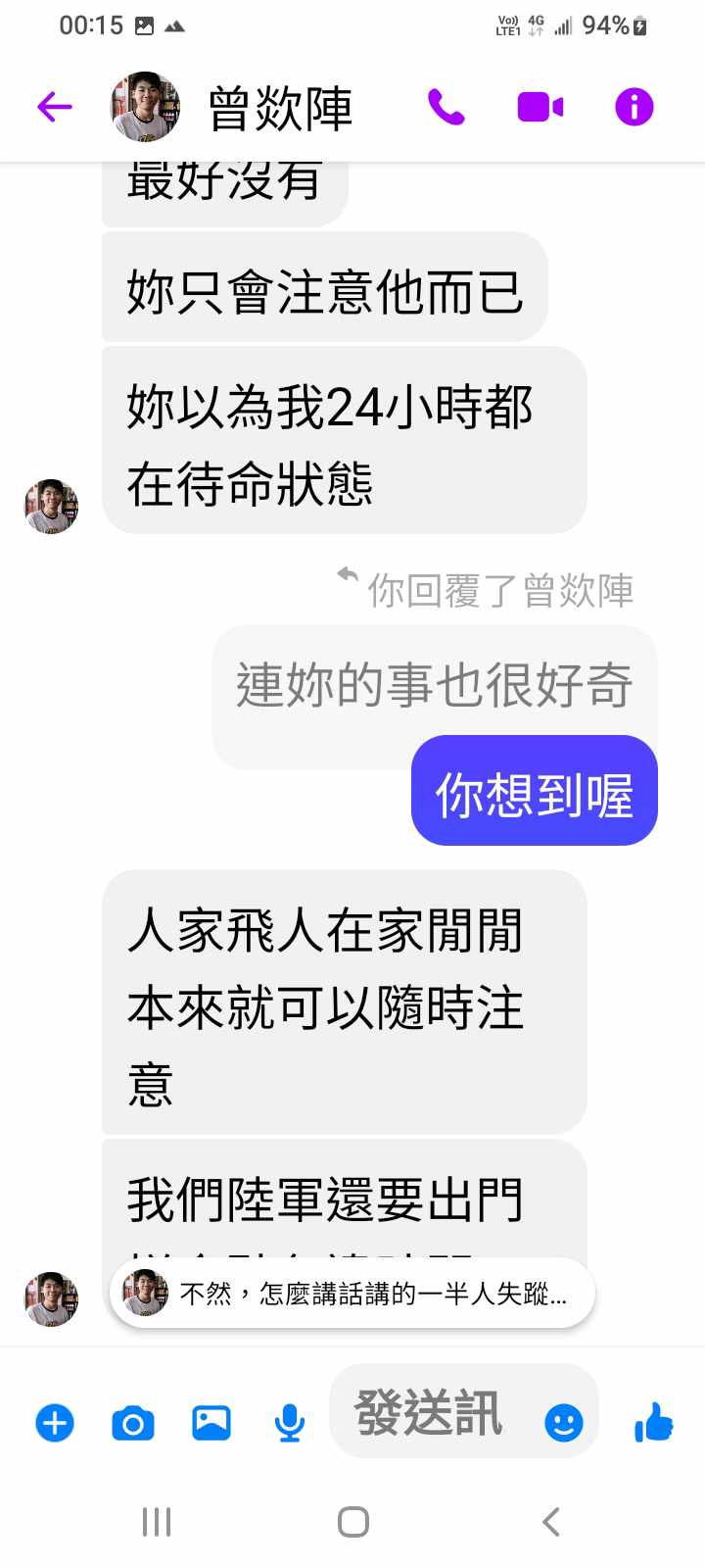 然後說臨時要回台灣
