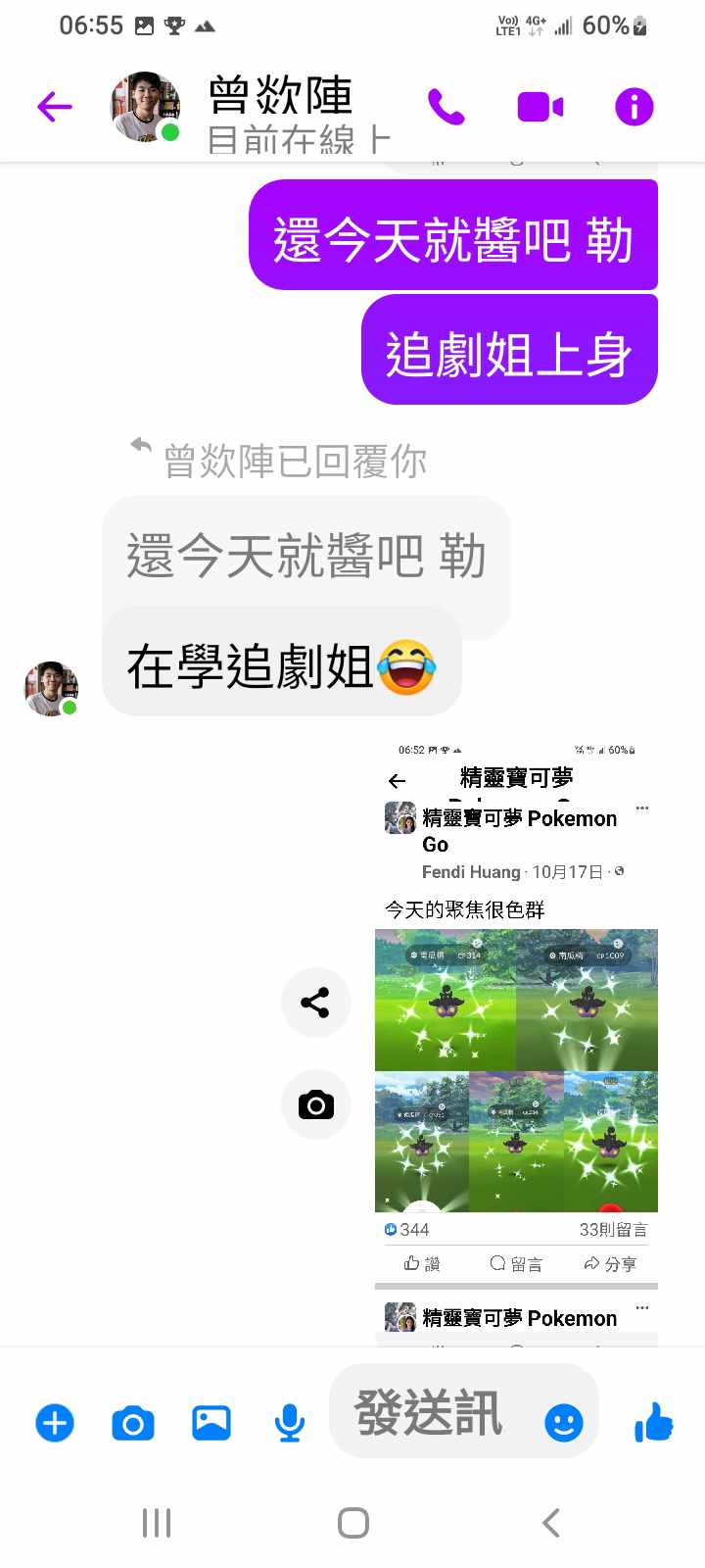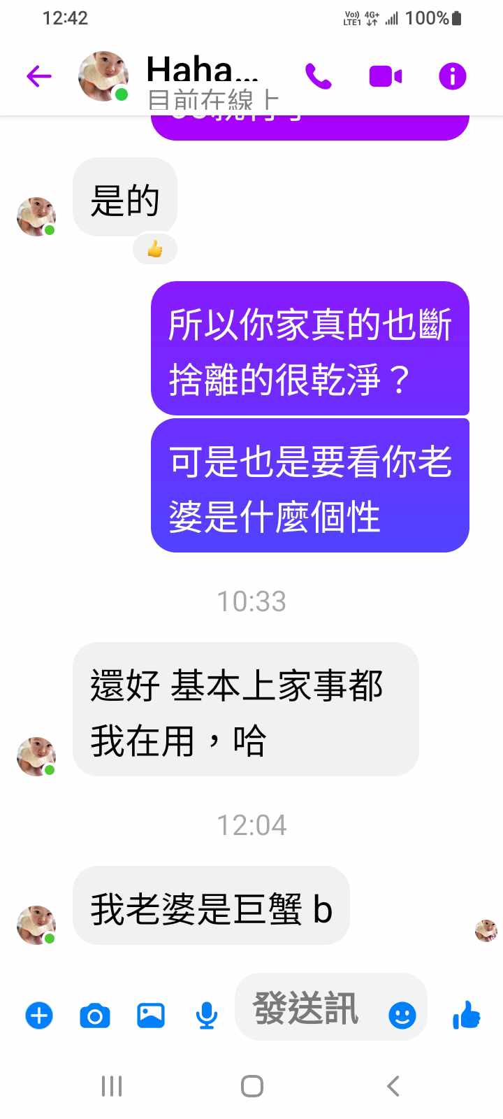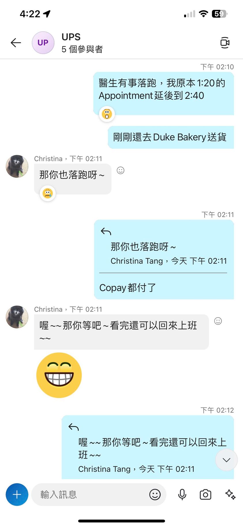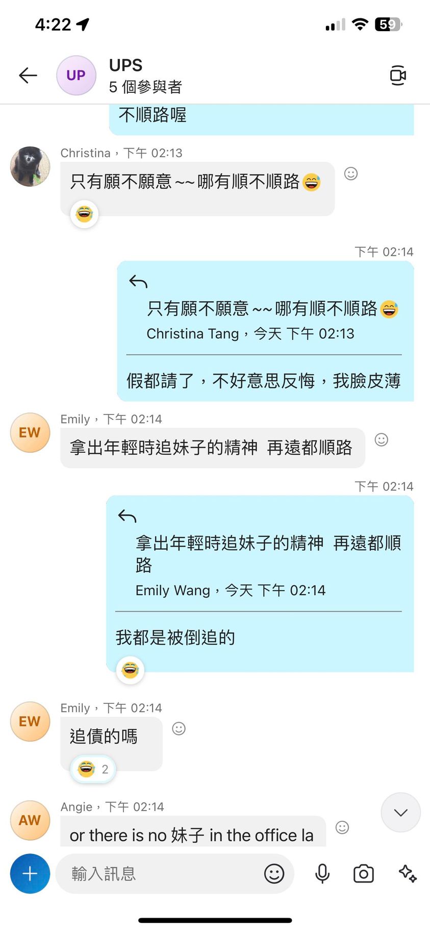 對你的訊息「」傳達了 😆 心情