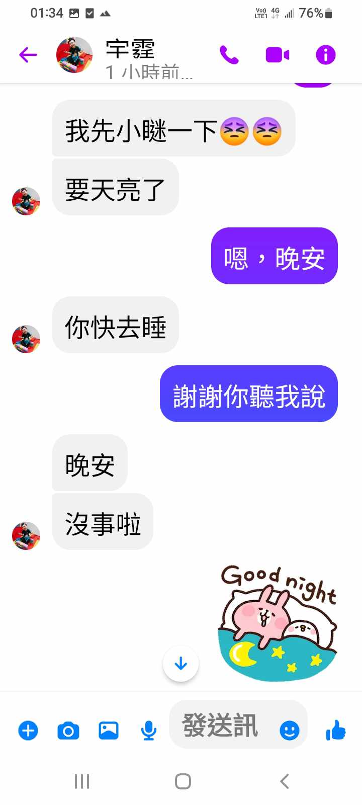我去睡了,晚安