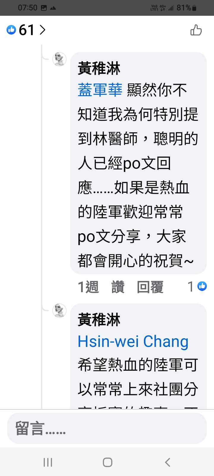 應該是有看到我出面反駁