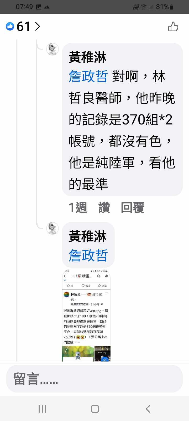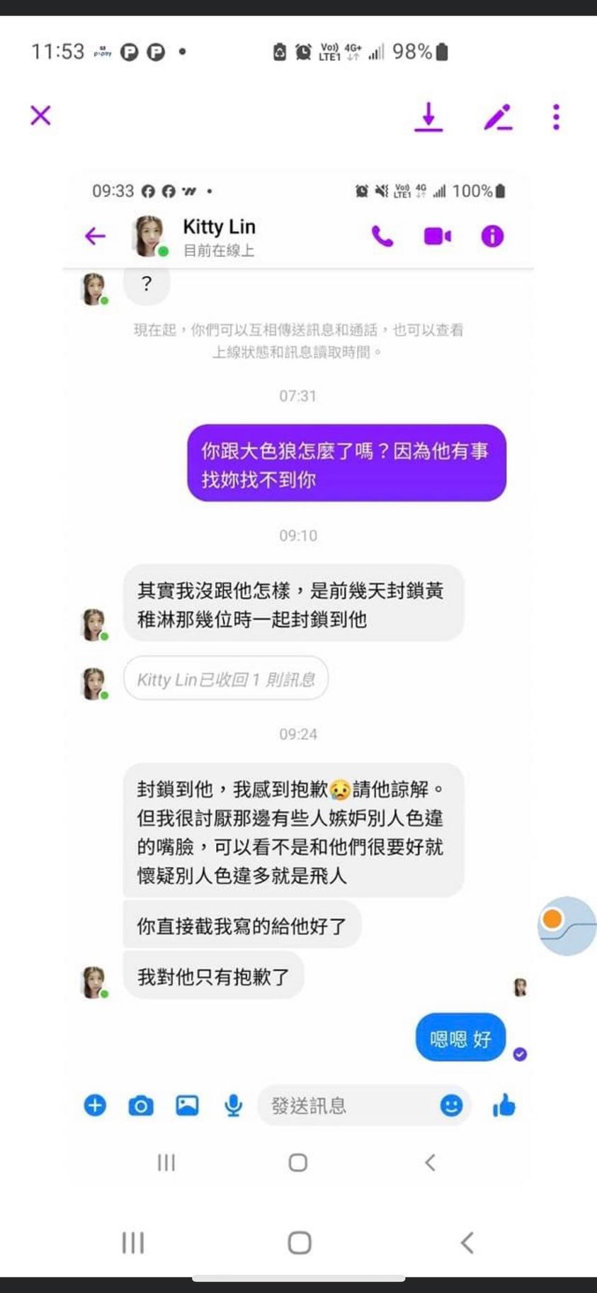 還好有人發現黃稚淋都沒證據,只是自己用奇怪理由亂猜,解我封鎖了