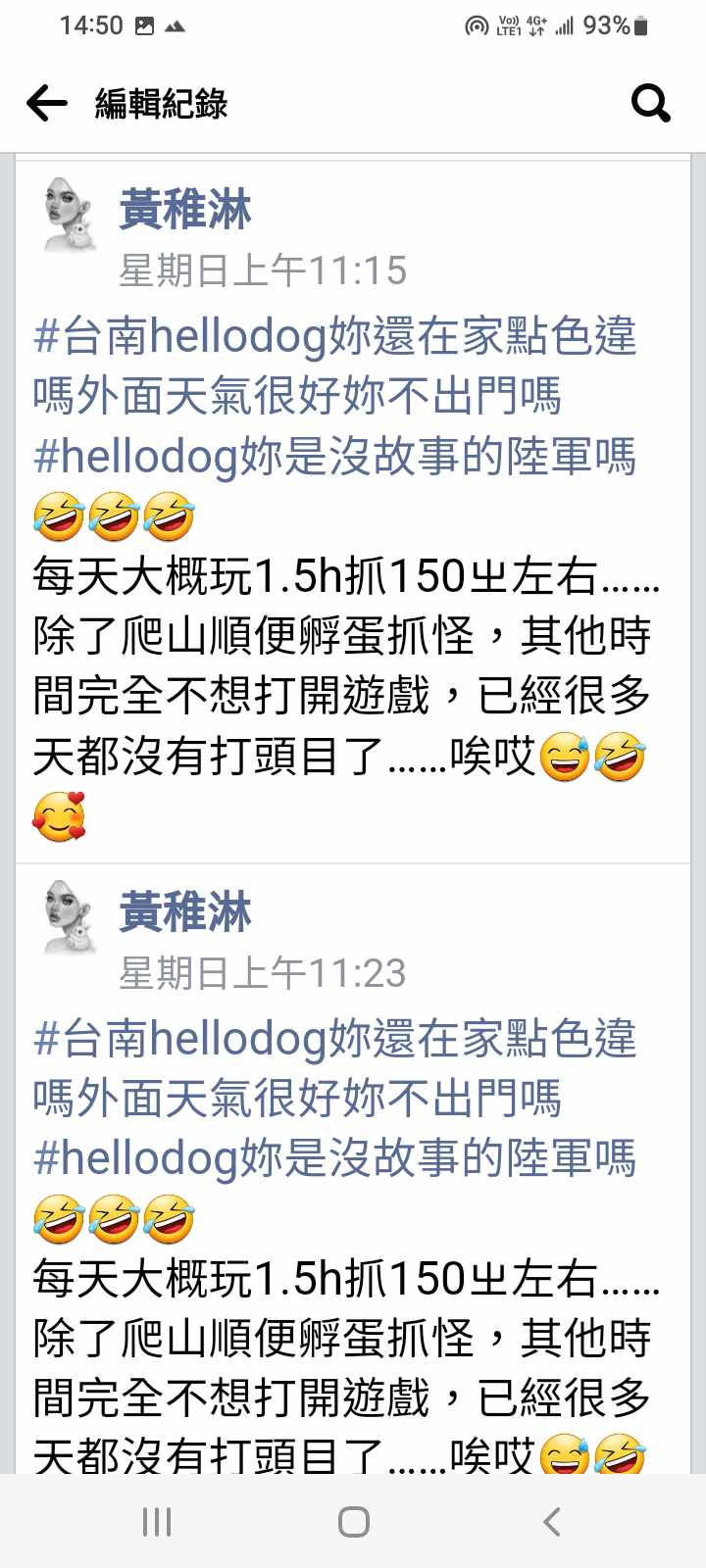 她酸個人編輯5次